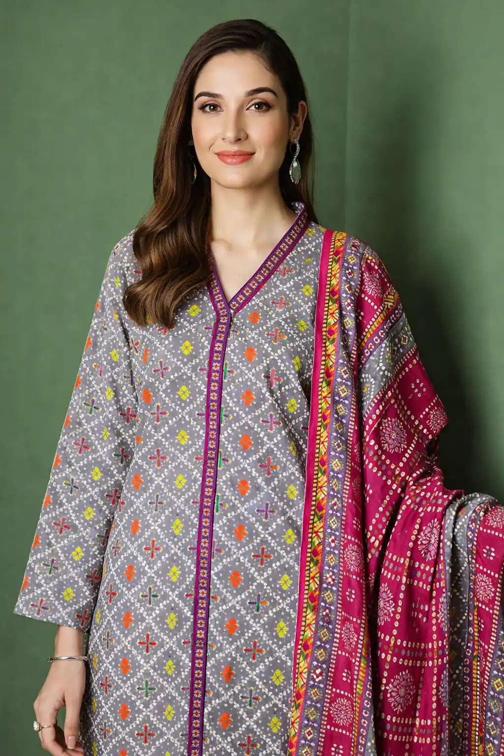 -Chunri Print Lawn Shirt: 3Mtr